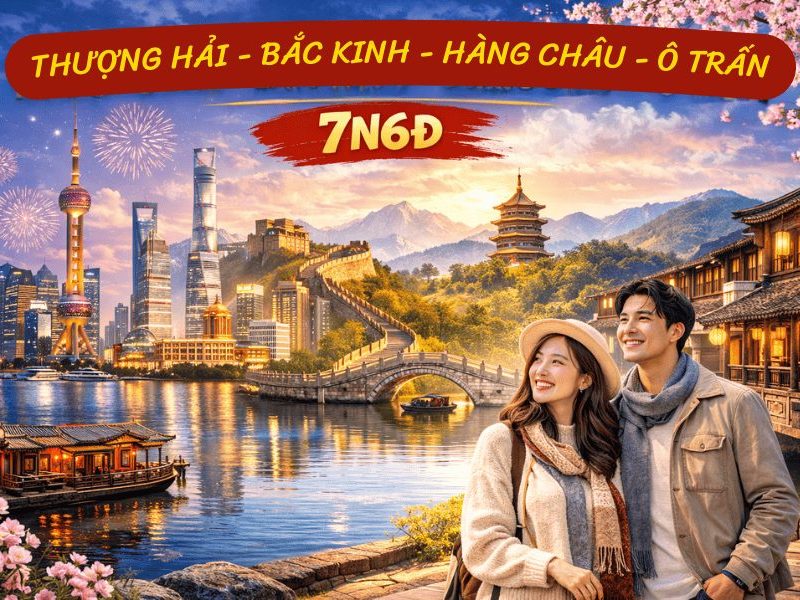 Tour Bắc Kinh – Thượng Hải – Hàng Châu – Ô Trấn 6N5Đ bay Vietnam Airlines đưa du khách khám phá những điểm đến nổi bật của Trung Quốc với hành trình hấp dẫn, dịch vụ chất lượng và trải nghiệm trọn vẹn.